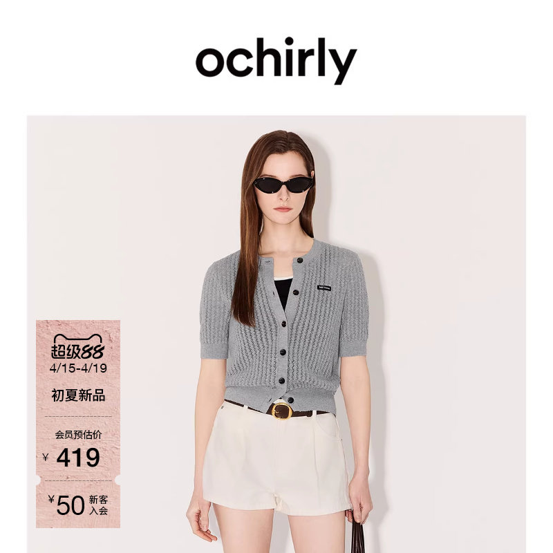 【新品】OCHIRLY欧时力 镂空绣章短袖针织外套女2026夏纯棉防晒衫