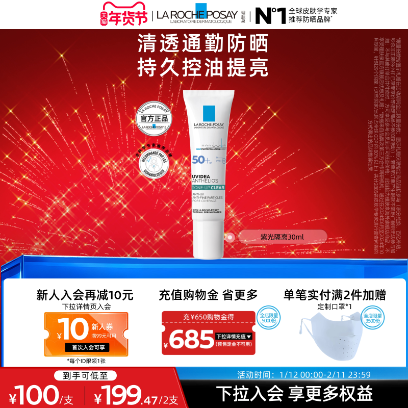 【海外店】理肤泉紫光隔离清透乳清爽防晒妆前效期至26年8月A