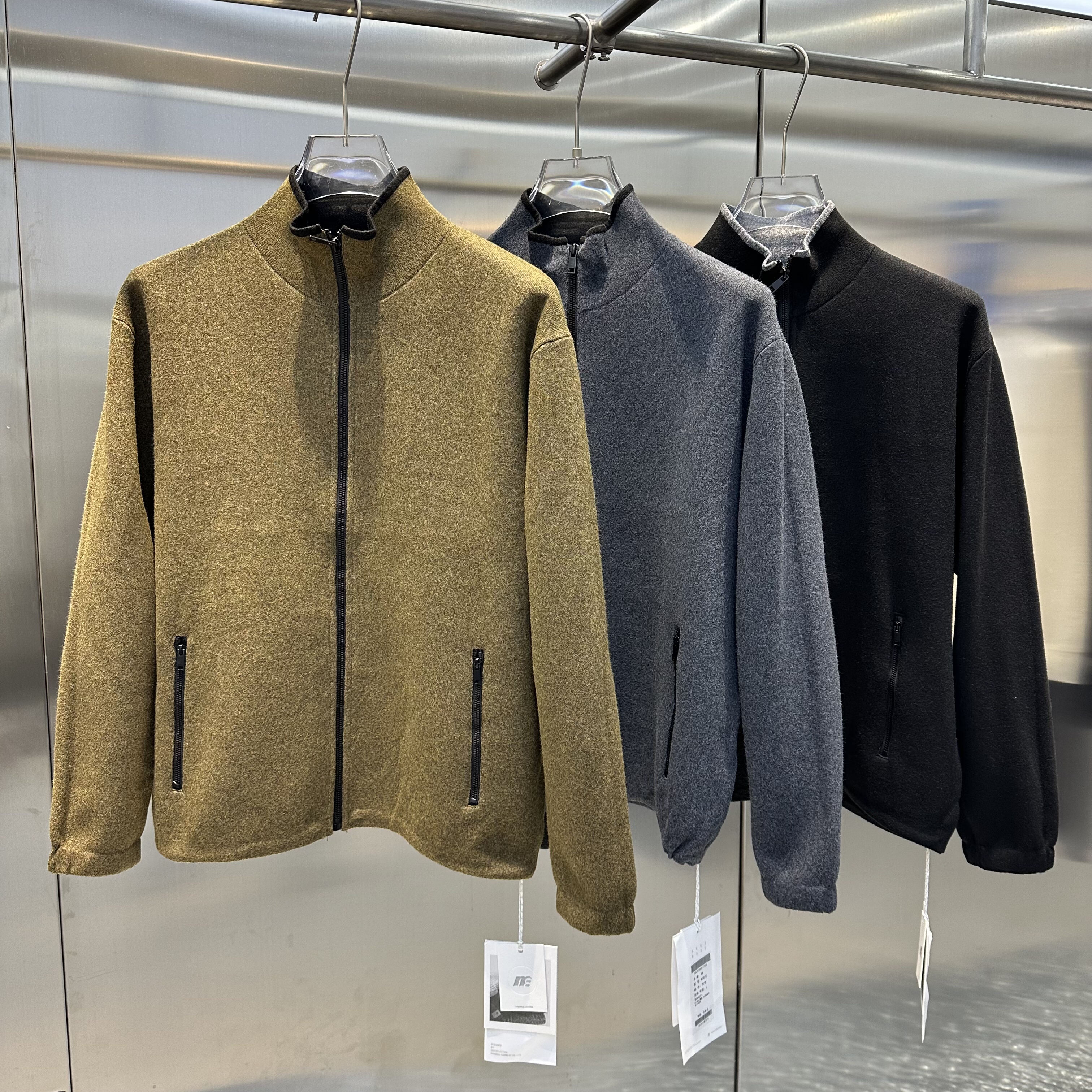 2025秋季男士高级感宽松文艺毛呢外套时尚百搭休闲保暖立领针织衫
