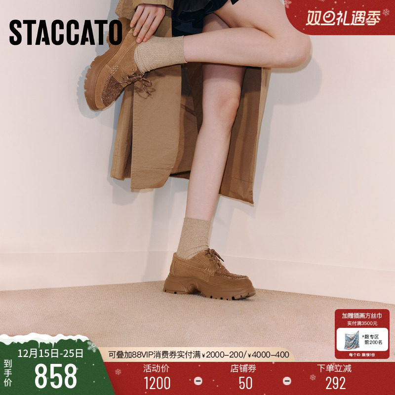 思加图2025新款复古运动休闲鞋厚底增高深口鞋牛津鞋女鞋EFU43CM5