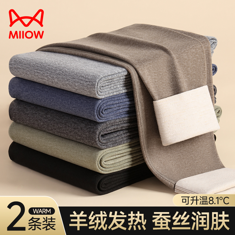 猫人羊毛醋纤发热加厚加绒无痕保暖裤男冬季恒温打底棉毛裤秋裤女