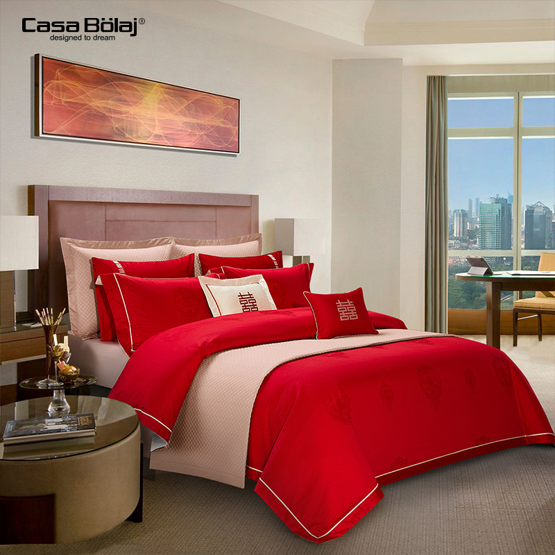 TB婚庆四件套高级感结婚床上用品大红色100支纯棉床单陪嫁十套件