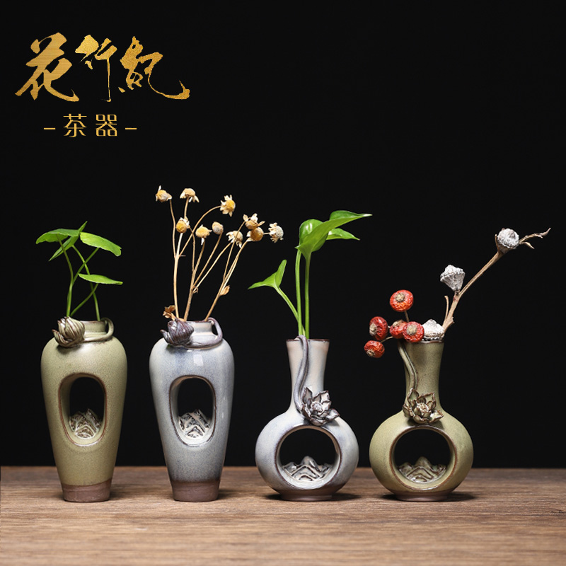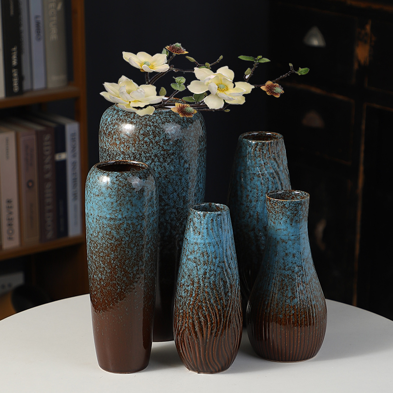 日式复古陶瓷干花装饰禅意花器创意水养植物花瓶摆件居家插花瓶子