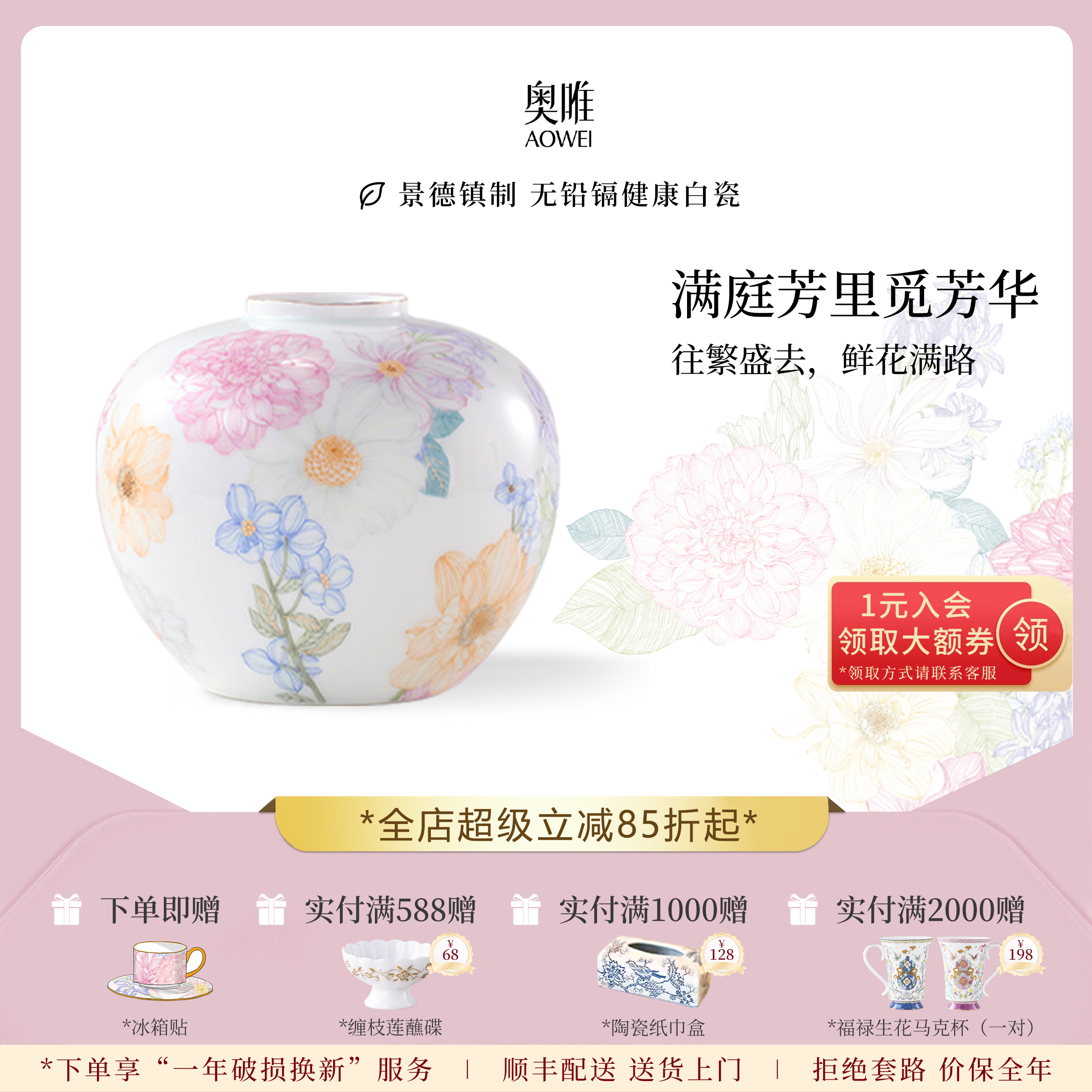 奥唯景德镇陶瓷花瓶摆件客厅高级感插花瓶子办公室家用好看的花瓶