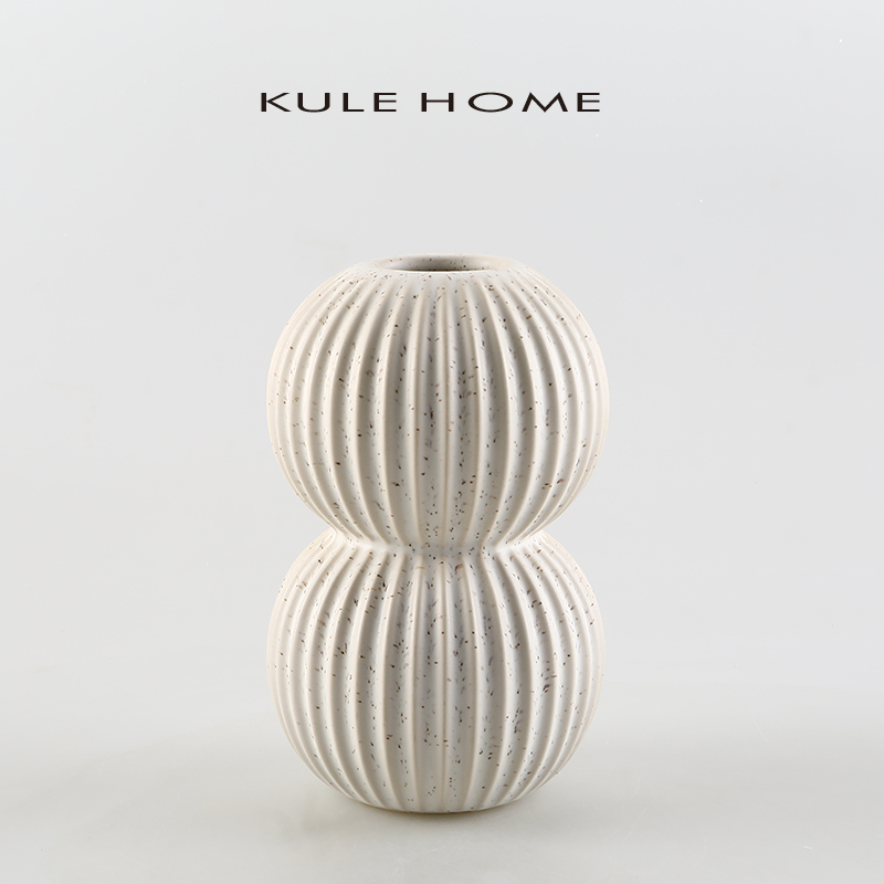 KULE HOME 创意个性八字条纹陶瓷花插瓶轻奢复古简约客厅插花瓶子