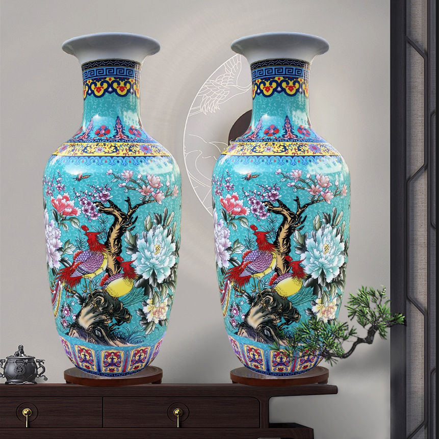 景德镇陶瓷器大花瓶子装饰品摆件珐琅彩落地客厅家居室电视柜插花