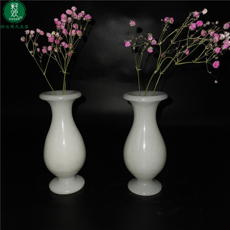 高档天然羊脂白玉石迷你细颈小花瓶插干花瓶子中式复古工艺品摆件