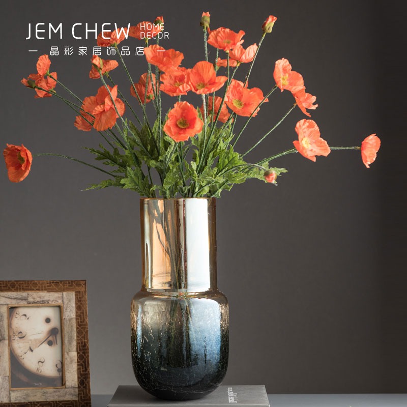 北欧简约干花花瓶家居客厅台面装饰玻璃瓶灰色高档水培插花花瓶子