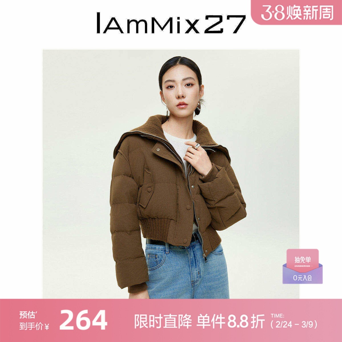 IAmMIX27冬季短款羽绒服女加厚保暖时尚百搭针织大翻领羽绒外套女