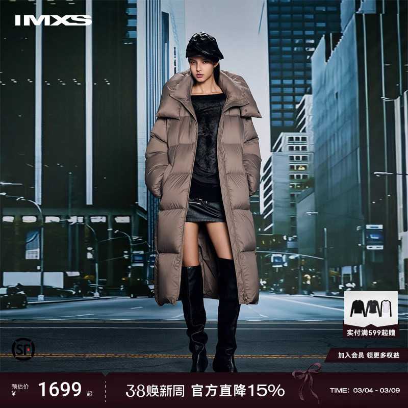 IMXS【大朵绒】云朵零压轻暖95白鸭绒中长款羽绒服女加厚保暖绒袄
