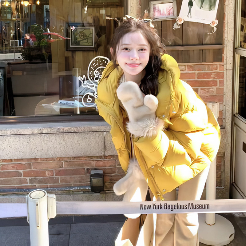 冬季黄色短款连帽泡芙羽绒服女加厚面包服外套冬装保暖小个子百搭