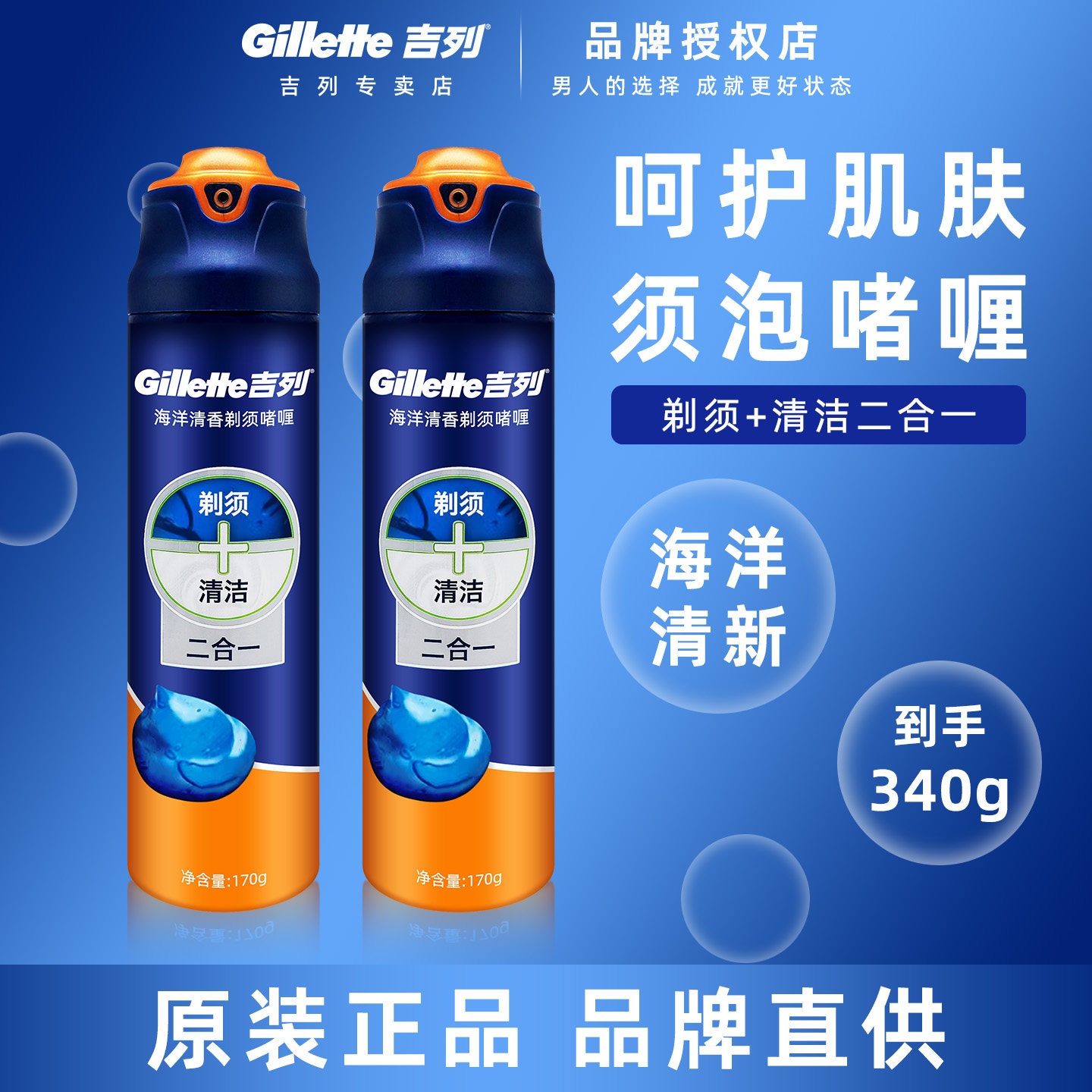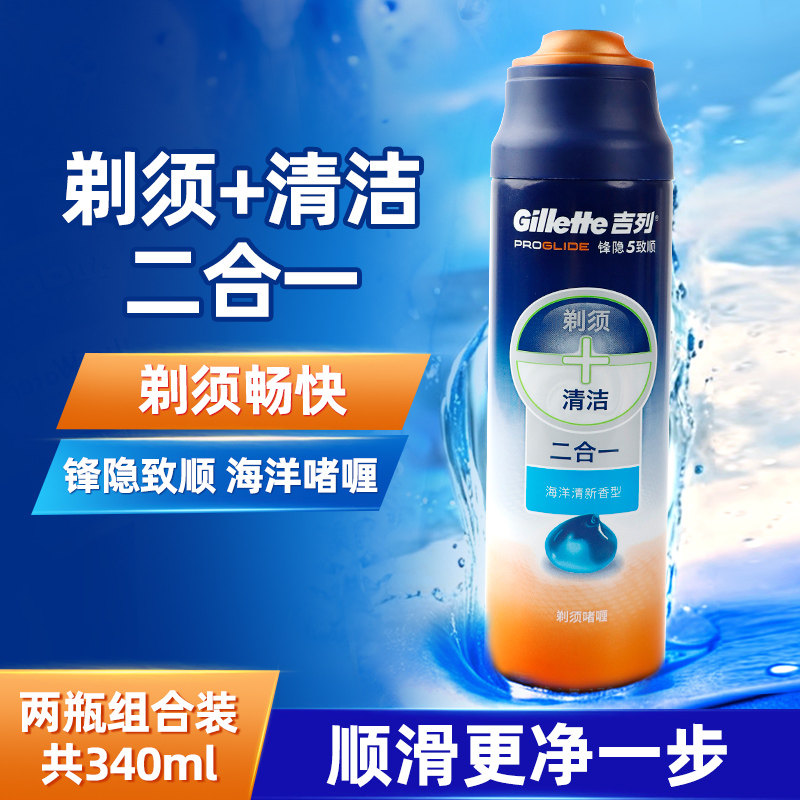 吉列锋隐致顺剃须啫喱海洋清新型男士剃须刮胡泡沫二合一170g两瓶