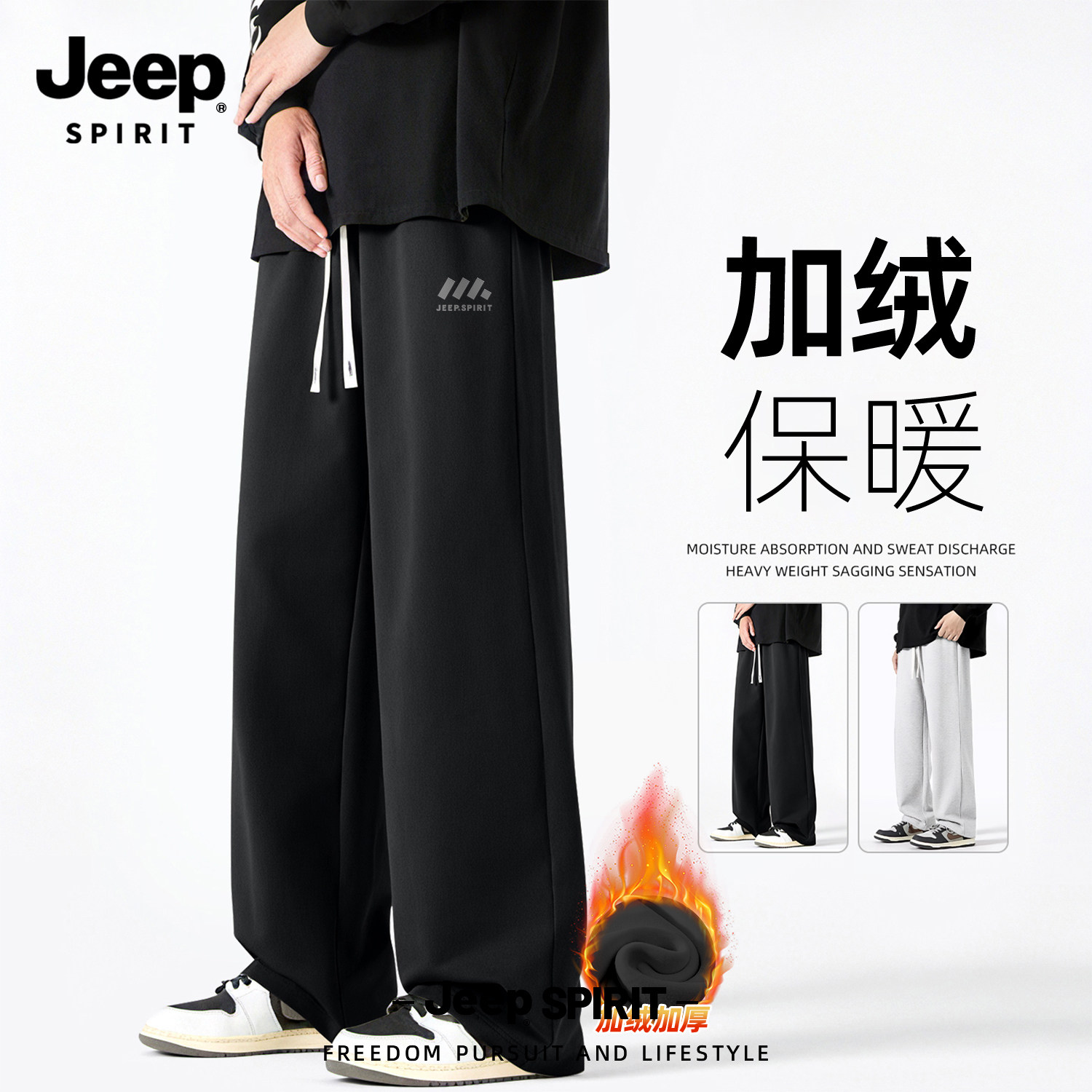 Jeep吉普加绒裤子男款秋季青少年华棉重磅休闲裤直筒宽松运动男裤