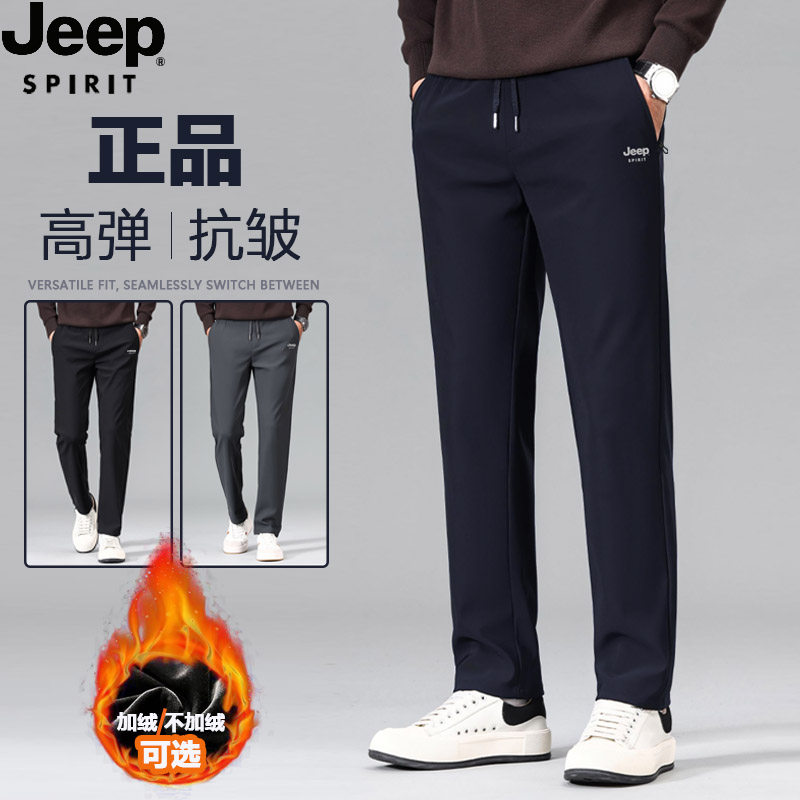 JEEP吉普男士休闲裤松紧腰运动裤秋冬季加绒加厚款直筒裤弹力男裤