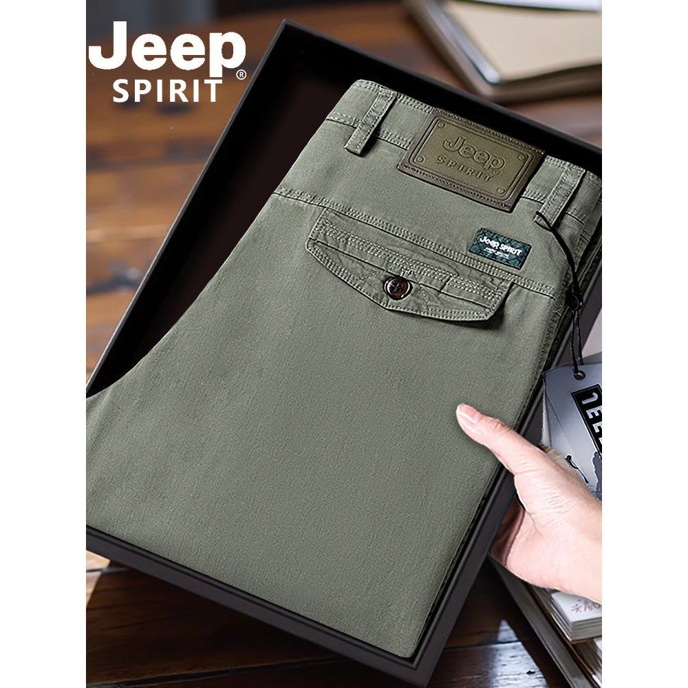 吉普男裤2025新款纯棉直筒宽松休闲裤男士春秋款中年长裤子正品