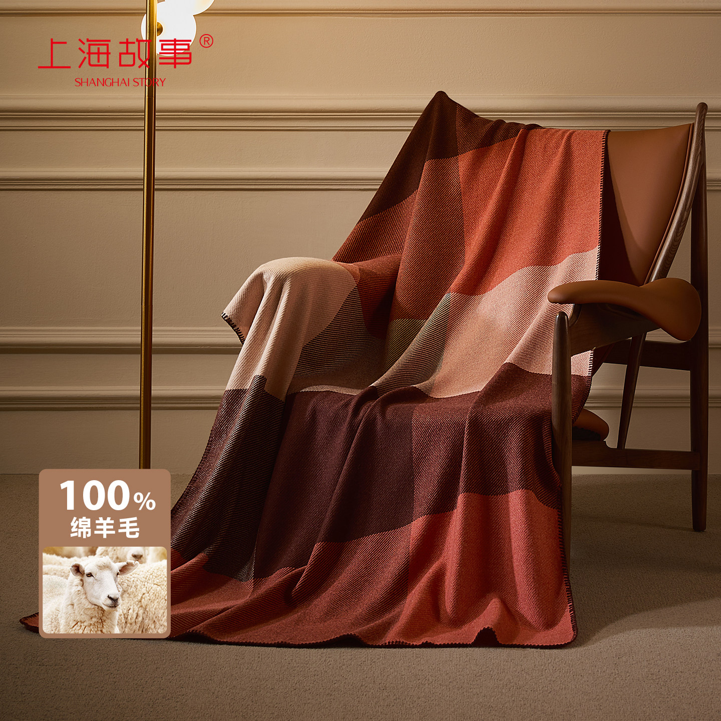 上海故事绵羊毛提花午睡客厅沙发盖毯子多功能披肩毛毯送长辈礼盒