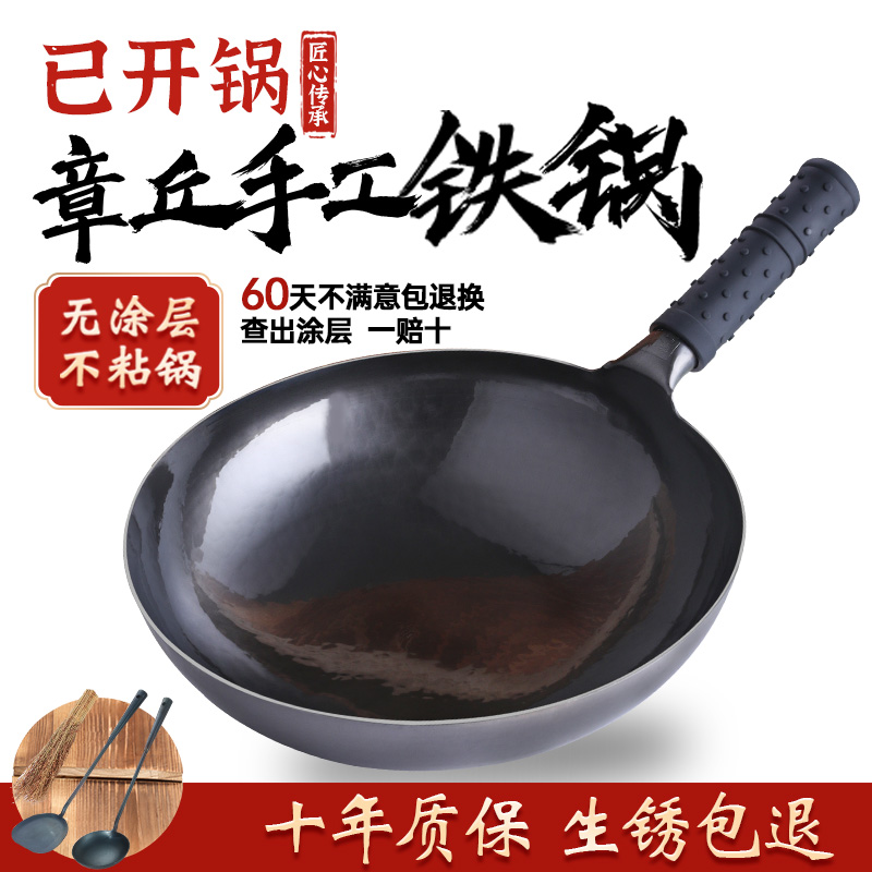 章丘老式铁锅老款炒菜不粘锅手工无涂层家用燃气灶煤气电磁炉炒锅