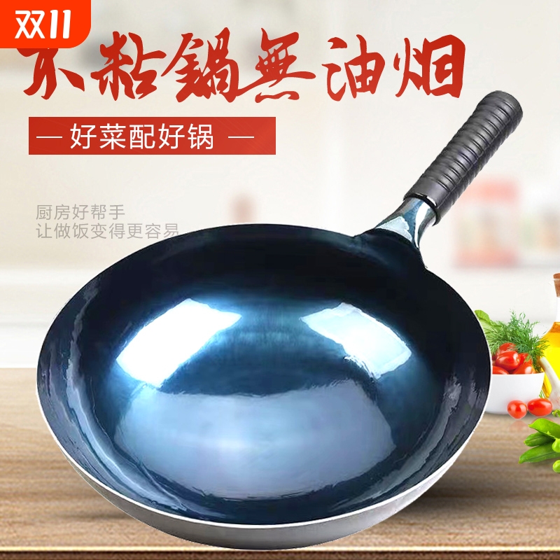 无涂层铁锅老式家用商用炒菜锅不粘锅煤气燃气灶用熟铁炒锅超薄轻