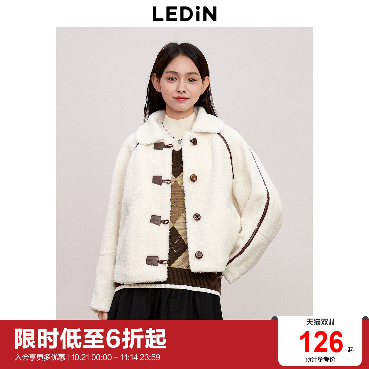 羊羔毛羊羔绒短款皮毛一体外套女冬季加绒加厚宽松牛角扣外套上衣