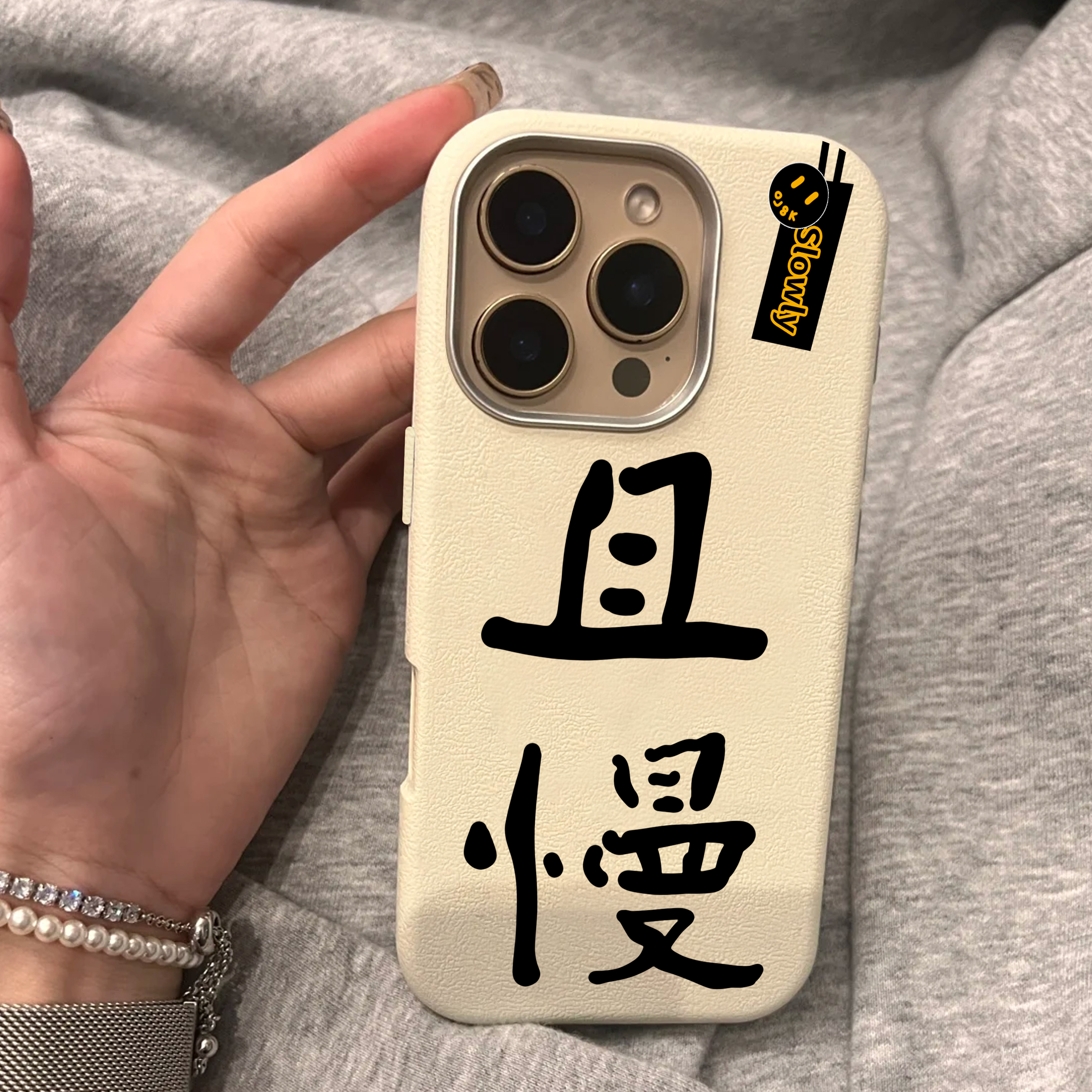 个性且慢文字适用iPhone16苹果手机壳15promax多巴胺皮纹14plus金属框13书法12简约男款11小众女xsmax高级感7