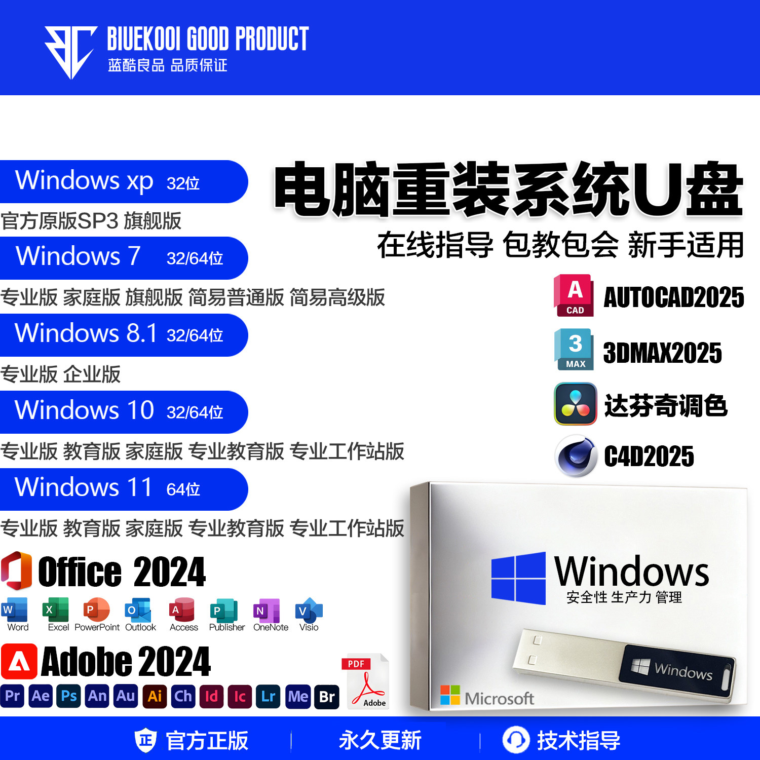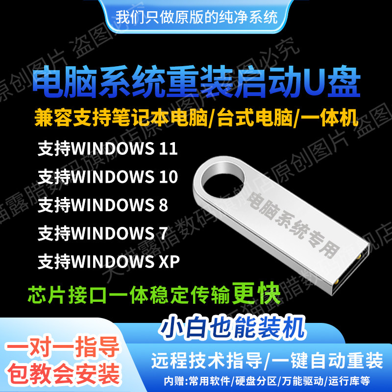 电脑重装系统u盘win10/11/7/XP正版一键安装PE启动纯净旗舰专业版