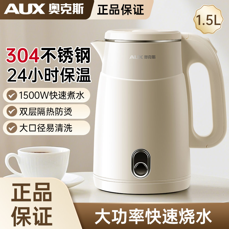 奥克斯电热水壶烧水壶1.8L自动断电304食品级钢材双层防烫保温