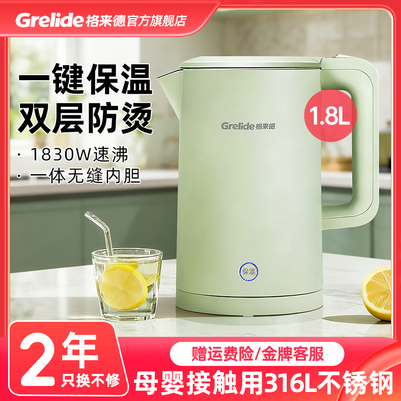 Grelide/格来德 D1701K家用恒温保温电热水壶双层防烫茶壶热水壶