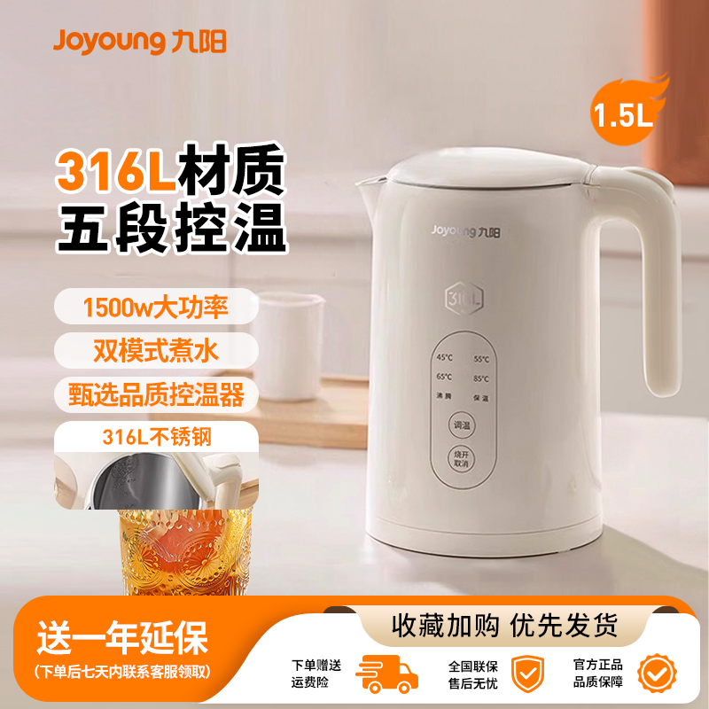 九阳电热水壶家用烧水壶双层防烫保温316L不锈钢无缝内胆开水壶
