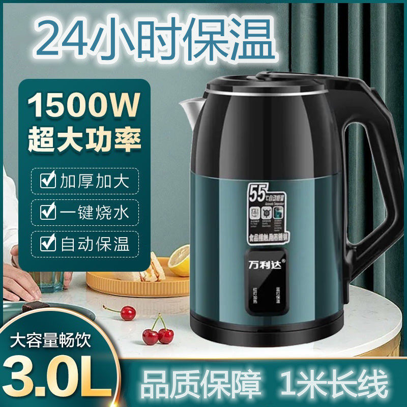 万利达保温电热水壶3L大容量双层烧水壶防烫家用自动恒温自动断电