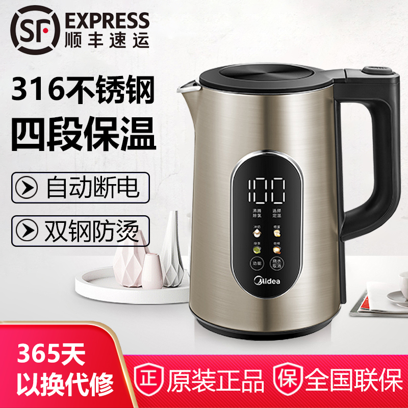 美的电热水壶烧水壶恒温一键保温双层防烫家用316L不锈钢热水壶