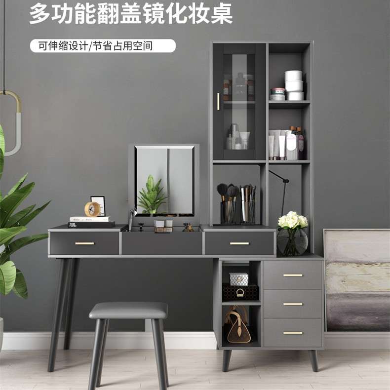 化妆桌翻盖镜一体现代简约台式电脑桌伸缩梳妆台小型书桌书架组合