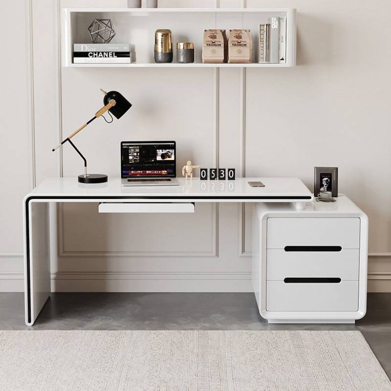 现代简约台式电脑桌家用学习办公桌卧室小户型白色烤漆笔记本书桌