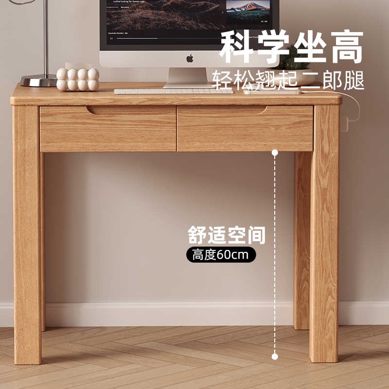 全实木书桌现代简约台式电脑桌红橡木儿童学习桌家用办公桌写字台