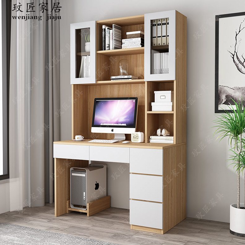 家用学习桌现代简约台式电脑桌子实木书柜定制一体桌书桌书架一体