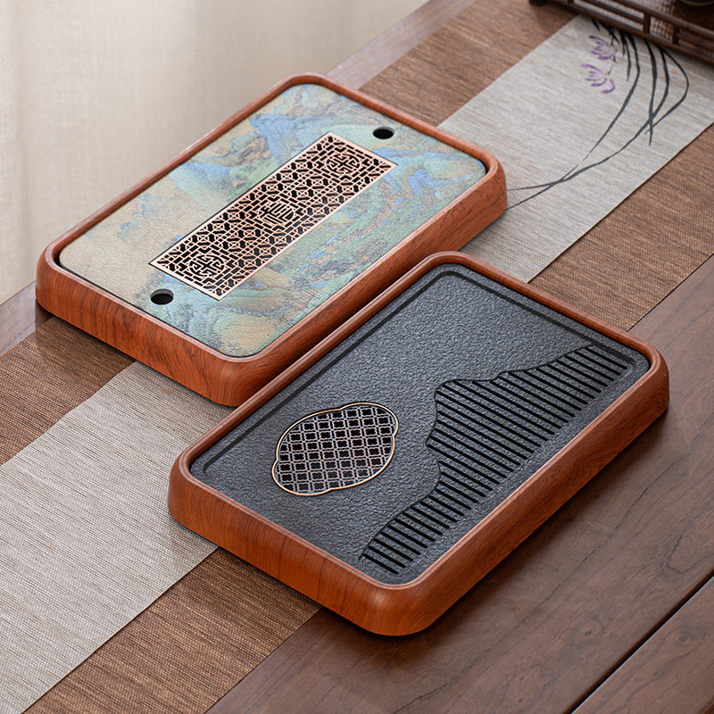 轻奢小型排储水功夫茶台家用竹制茶海干泡托盘密胺仿石茶盘不锈钢