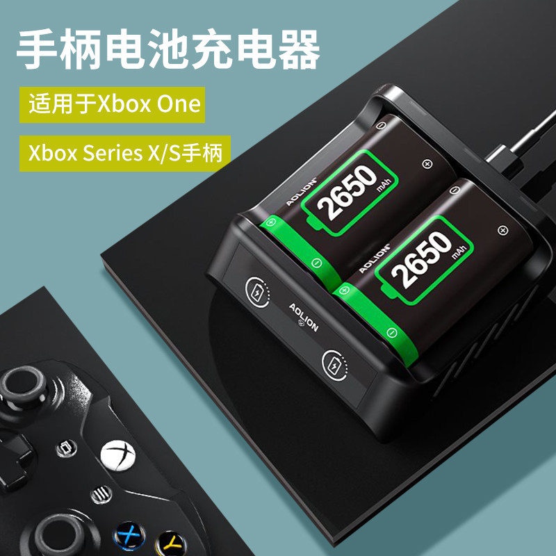 AOLION澳加狮 xbox手柄电池充电套装适用微软原装蓝牙手柄one/Series/sx可充双充电池底座配件