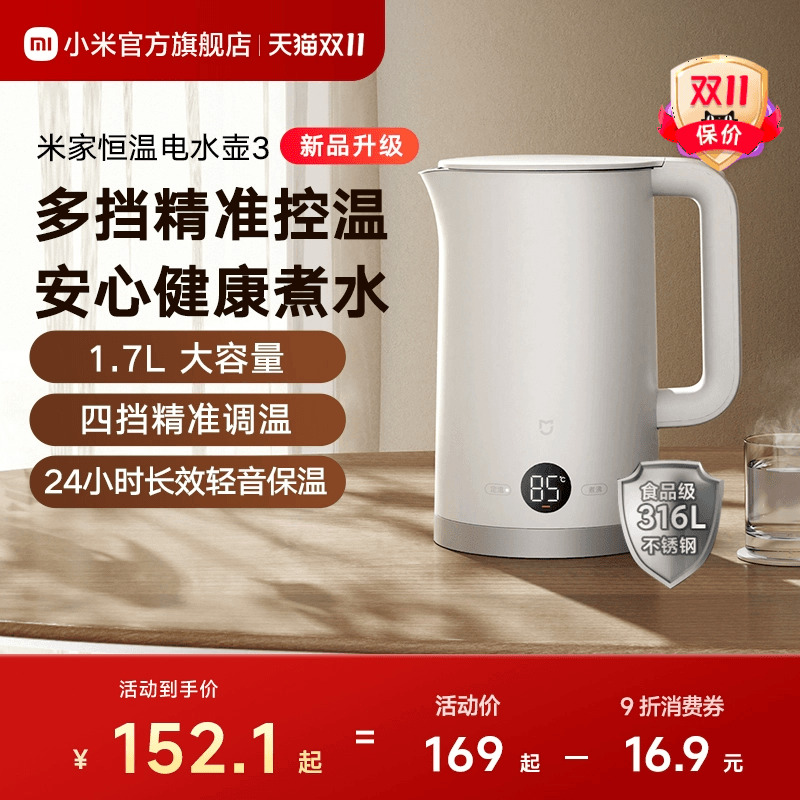 【新品】小米官旗米家恒温电热水壶3家用泡茶烧水保温一体316内胆