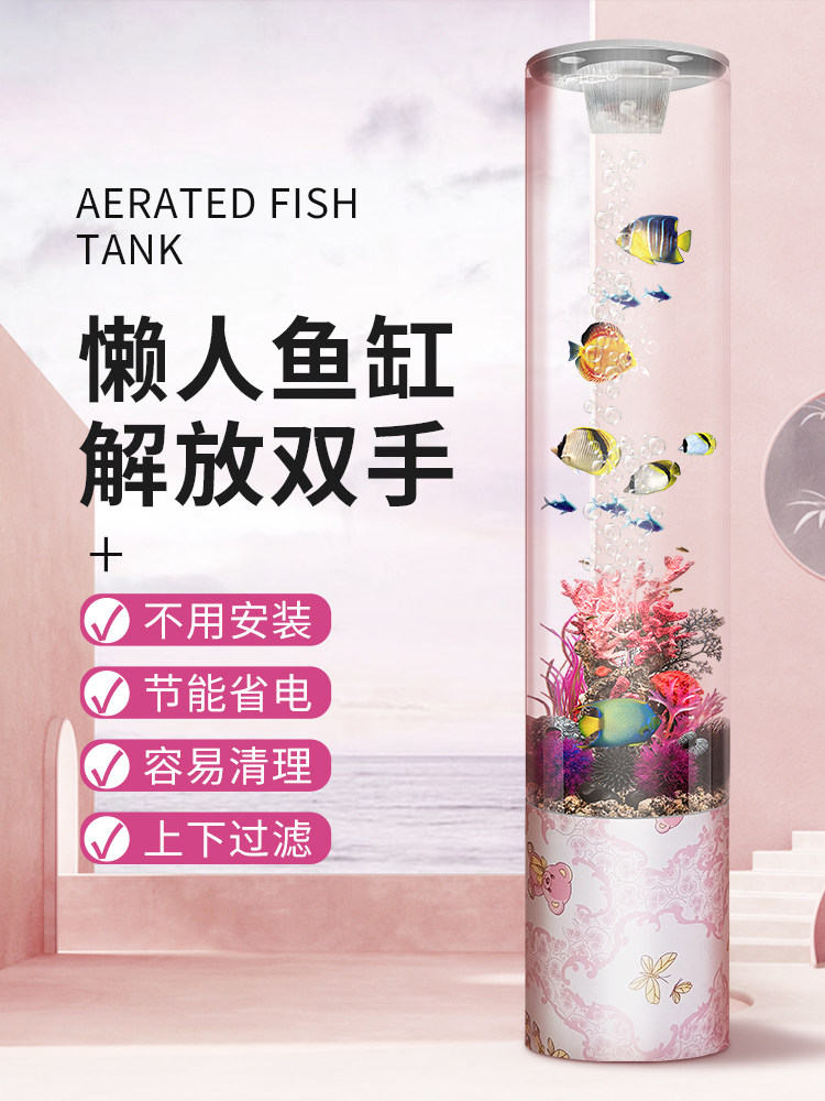 原创免换水亚克力圆柱鱼缸客厅电视柜旁立式落地鱼缸中型无管鱼缸