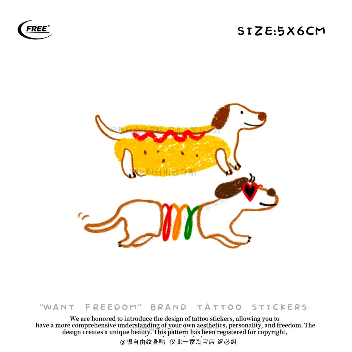 想自由 腊肠狗狗系列彩色遮盖遮瑕防水纹身贴纸买一送一高级可爱