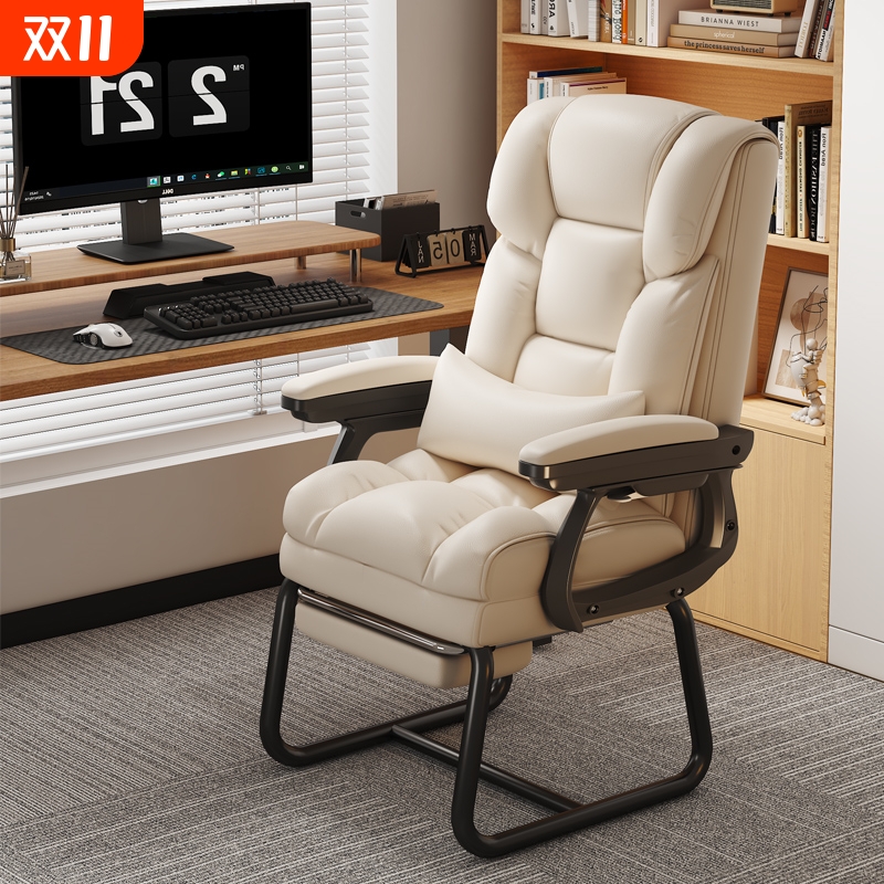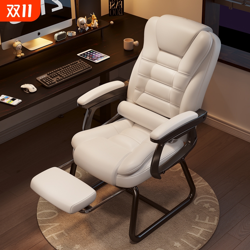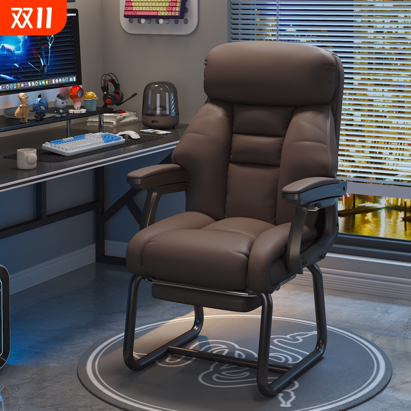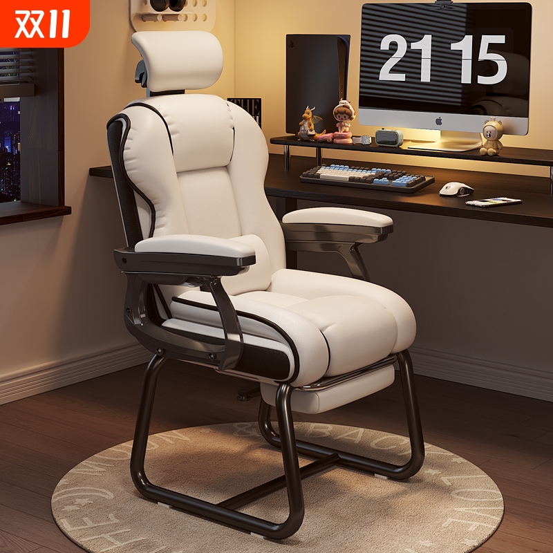 家用电脑椅电竞椅舒适久坐书桌办公椅可躺沙发椅休闲弓形椅固定脚