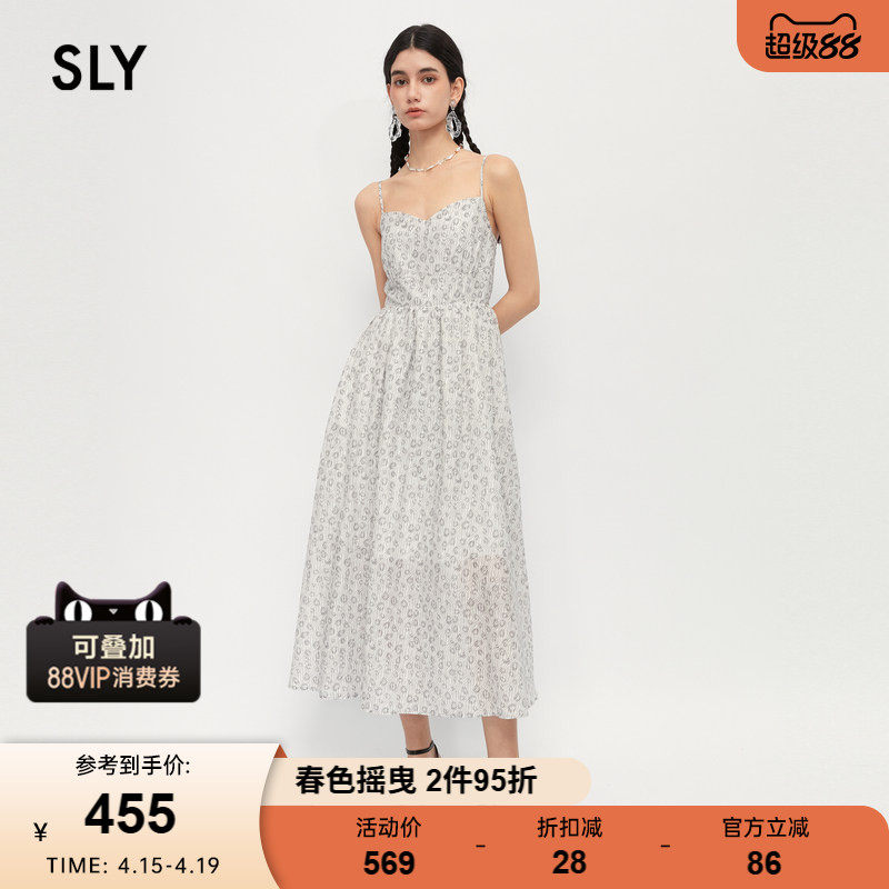 SLY 春季新品度假风豹纹雪纺长款吊带连衣裙女038GSU33-5690