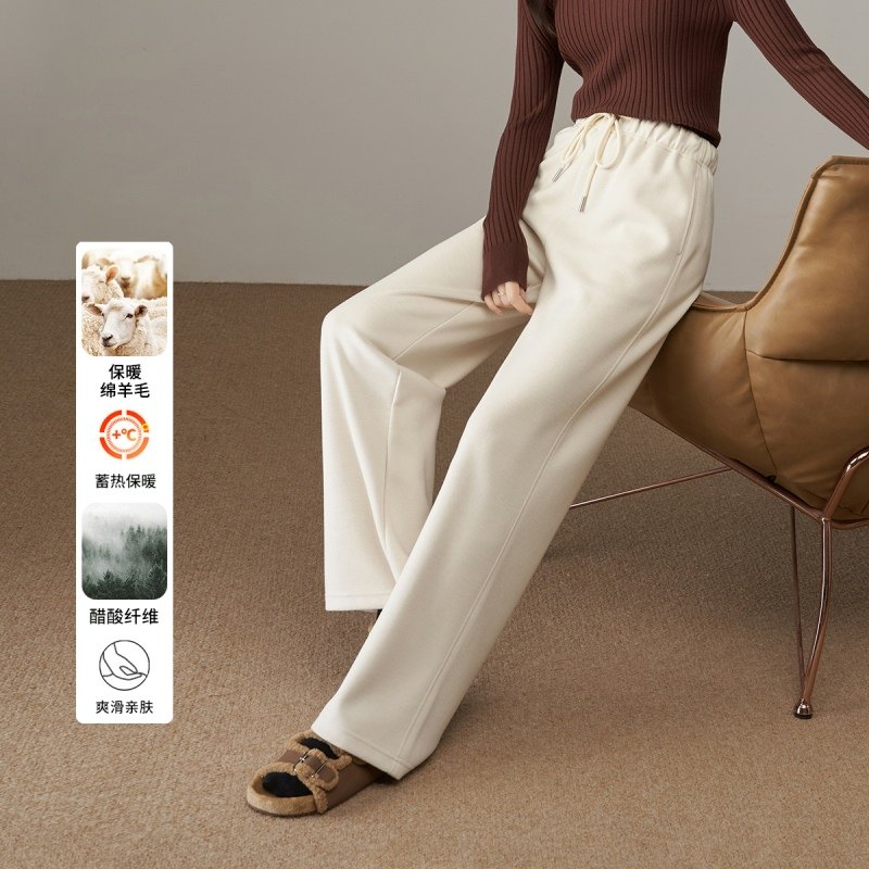 娅丽达羊毛醋酸慵懒阔腿裤女冬季毛呢裤子2025新款白色加厚直筒裤