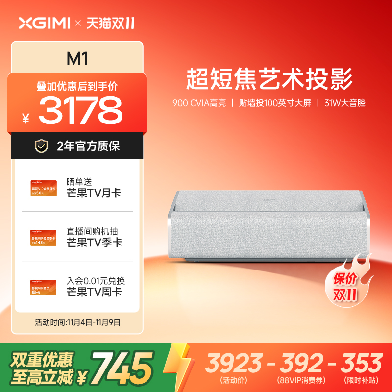 【政府补贴 立减15%】极米M1超短焦家用智能投影仪全高清高亮度1080P近距投影机大屏娱乐学习家庭影院