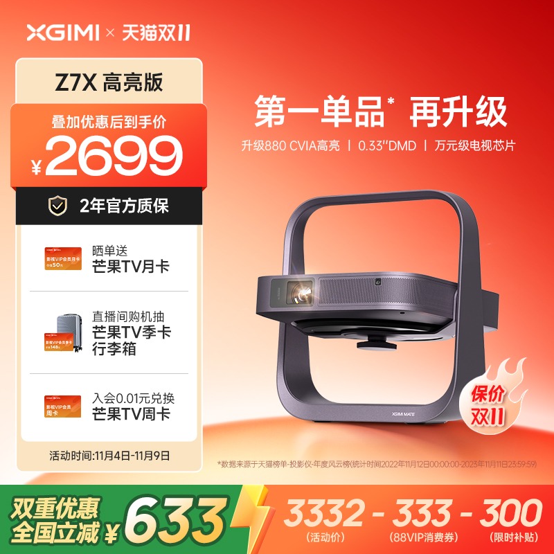 【多重优惠至高立减657元】极米Z7X高亮版投影仪家用1080P全高清轻薄客厅卧室便携智能投影机低蓝光