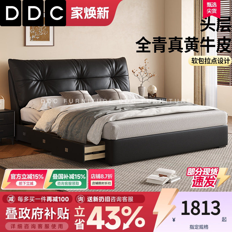 政府补贴DDC意式极简真皮床主卧简约双人床2025新款软包高端大气