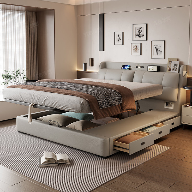 轻奢真皮床主卧高端大气1米8双人床现代简约多功能收纳储物婚床