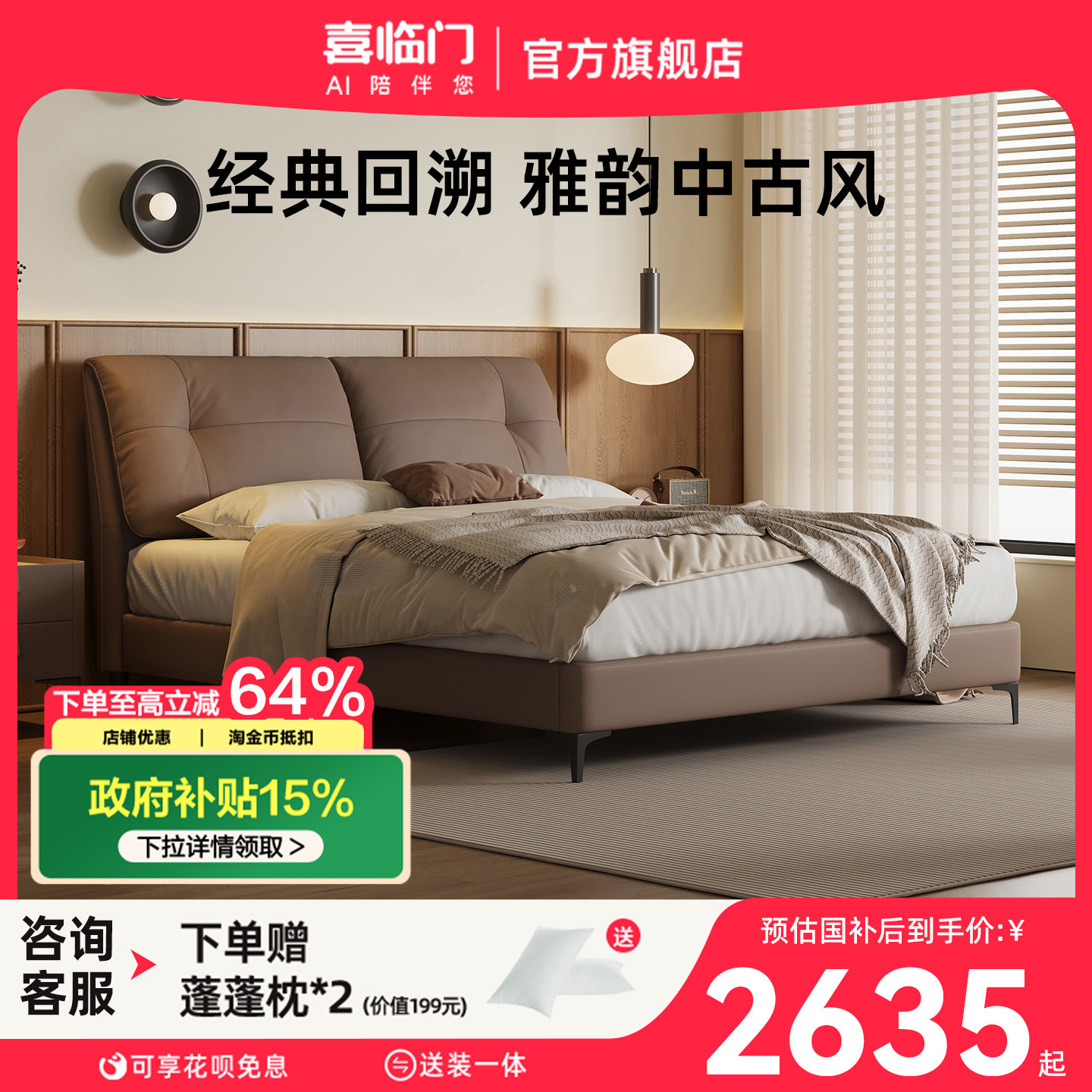 政府补贴喜临门现代简约中古复古风真皮床主卧大床高端床 缓缓Pro