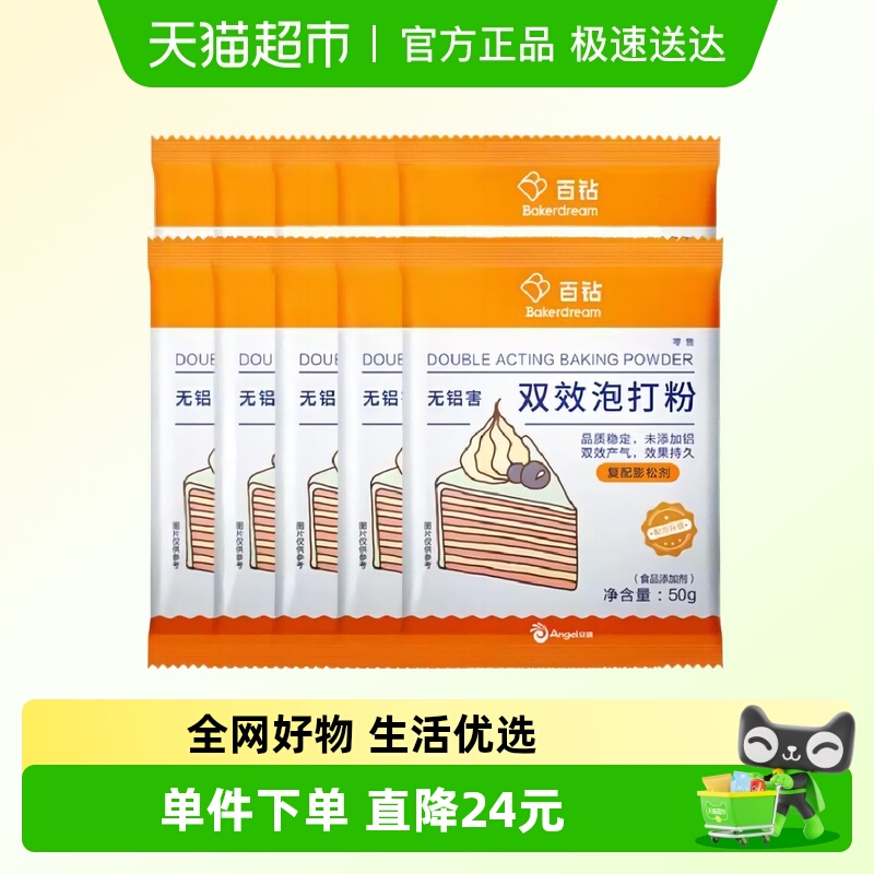 安琪百钻无铝害双效泡打粉家用小包50g*10袋做蛋糕烘焙材料膨松剂