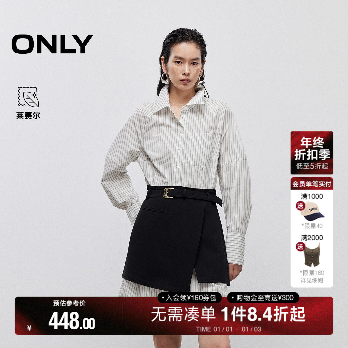 ONLY夏季设计感假两件衬衫裙翻领短裙连衣裙女|124307060