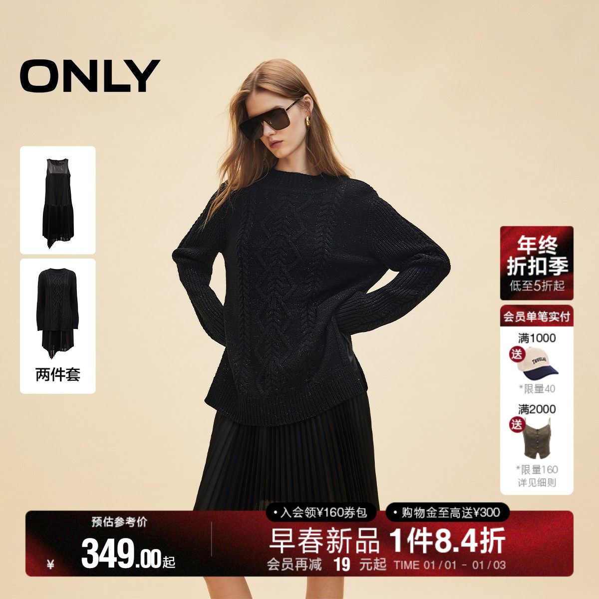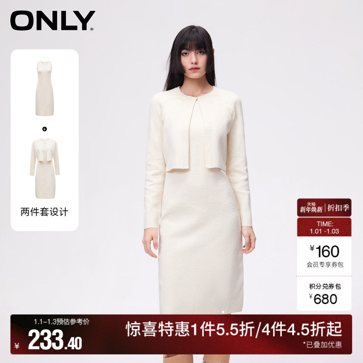 ONLY两件套时尚气质宽松纯色毛衣裙套装连衣裙女|124346002